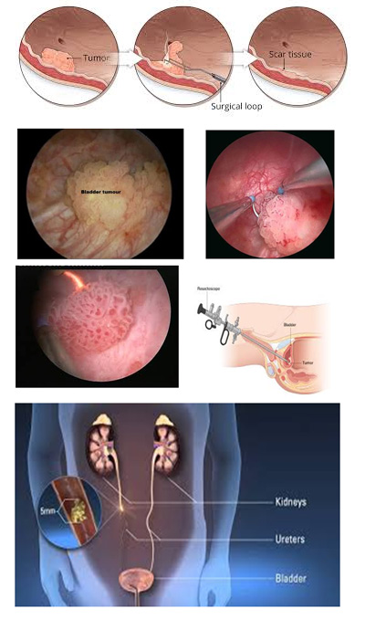 Trans Urethral Resection Of Bladder Tumour (TURBT) is the procedure for endoscopic removal of the bladder cancer. It is the first-line surgical treatment for diagnosis, staging, and treatment of visible bladder tumors. The instrument used to remove the tumor in the TURBT ( Resectoscope), is introduced through the urethra into the bladder. Attached to this scope is a small, electrified loop of wire which is moved back and forth through the tumor to cut and remove the tissue.